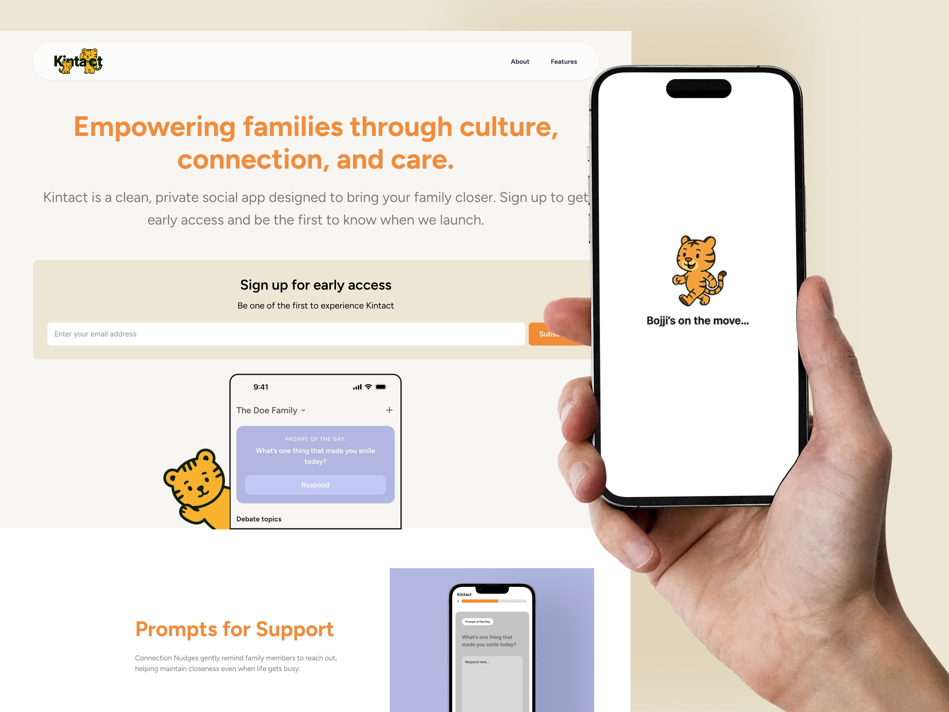 Kintact is a family-connection platform that helps relatives stay close by sharing memories, stories, and everyday life across generations. It bridges physical distance and generational gaps through meaningful, easy-to-share moments.