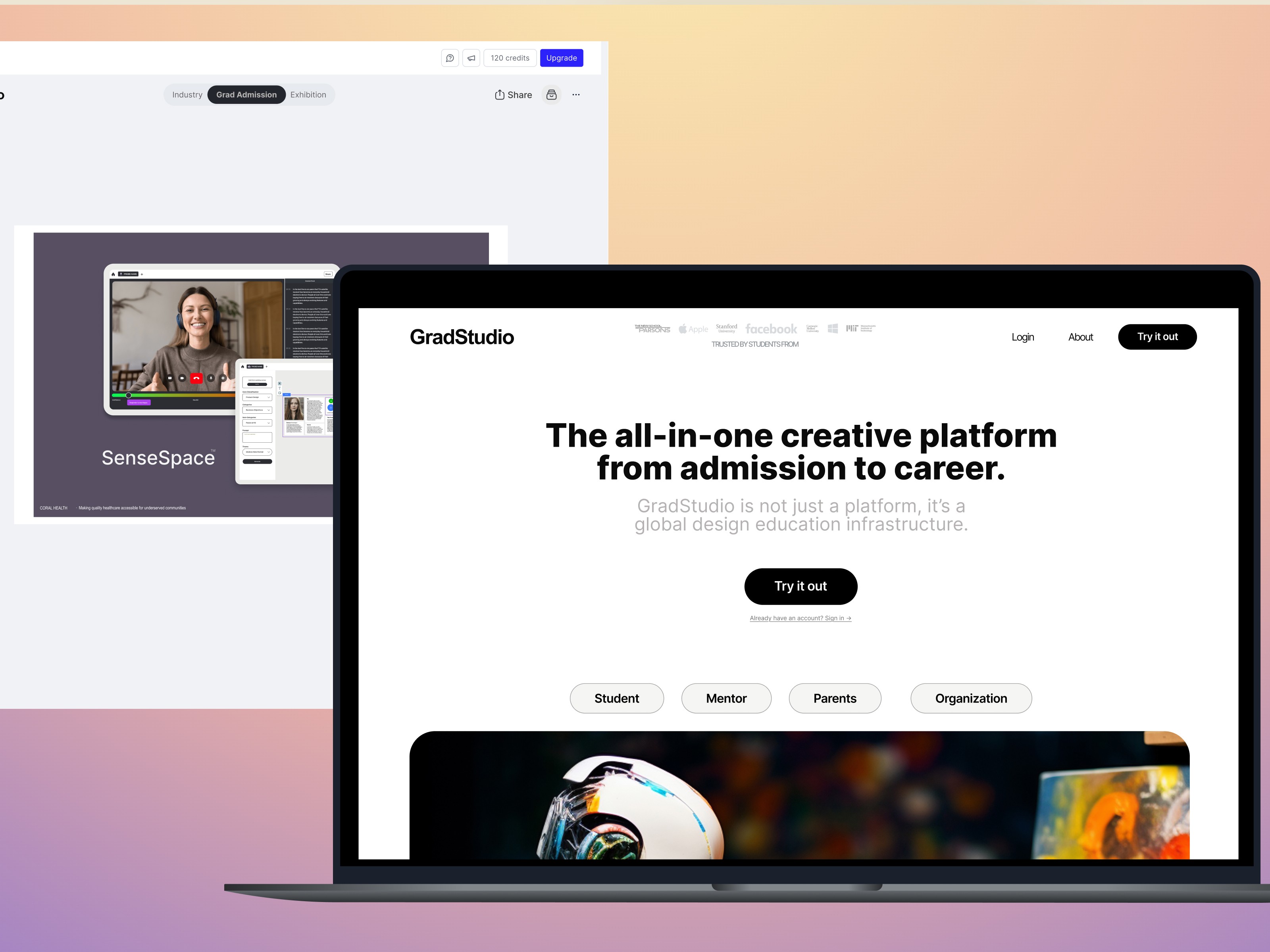 GradStudio aimed to help educational institutions track student outcomes and career trajectories. I designed and built their homepage and marketing website to clearly communicate their vision, mission, and the value of their Outcome Tracking system.