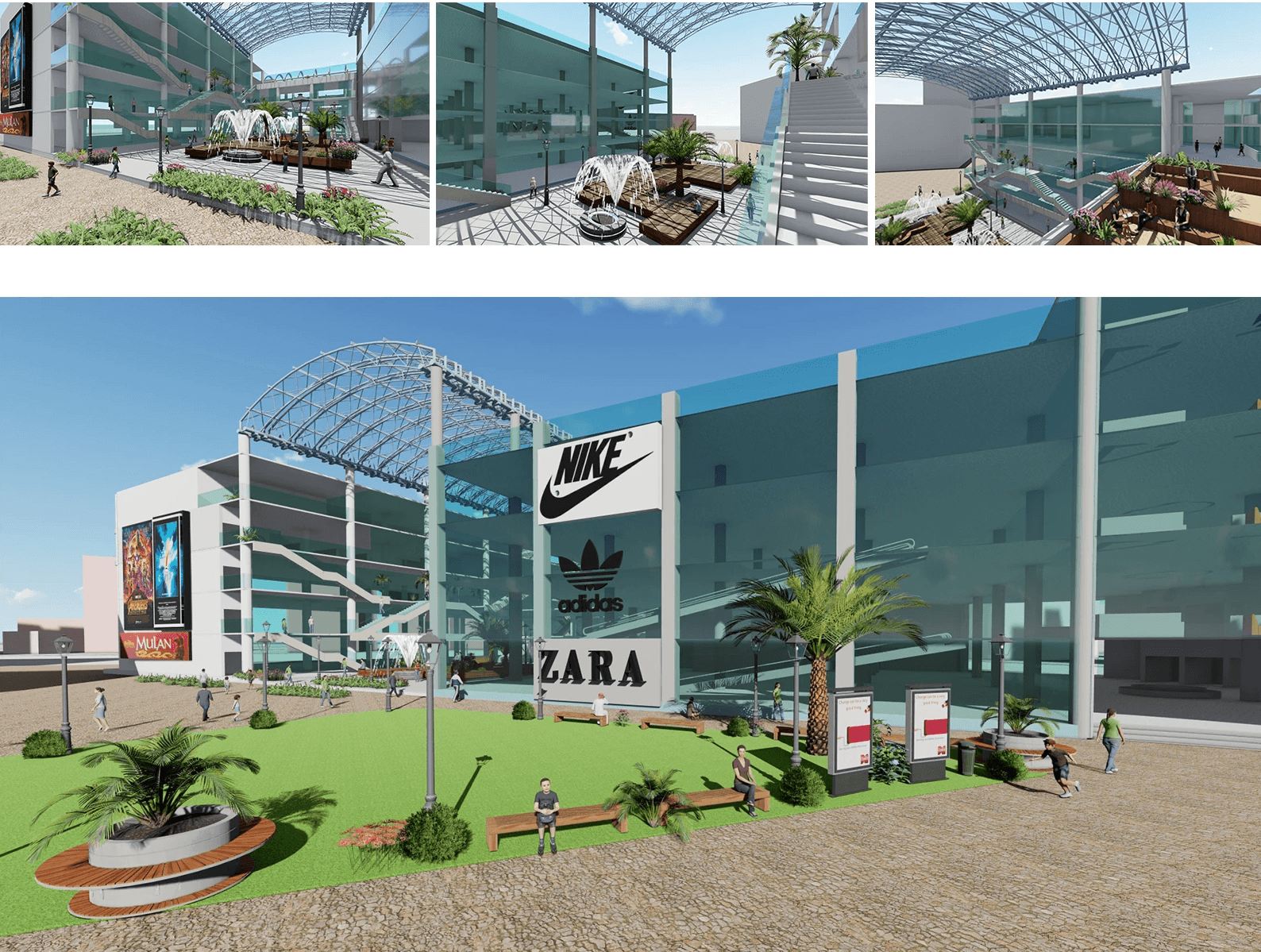 The design envisions a seamless integration of shopping, leisure, and community engagement within a vibrant urban environment. The multi-story commercial block is thoughtfully programmed to serve a wide demographic through diverse, layered experiences.